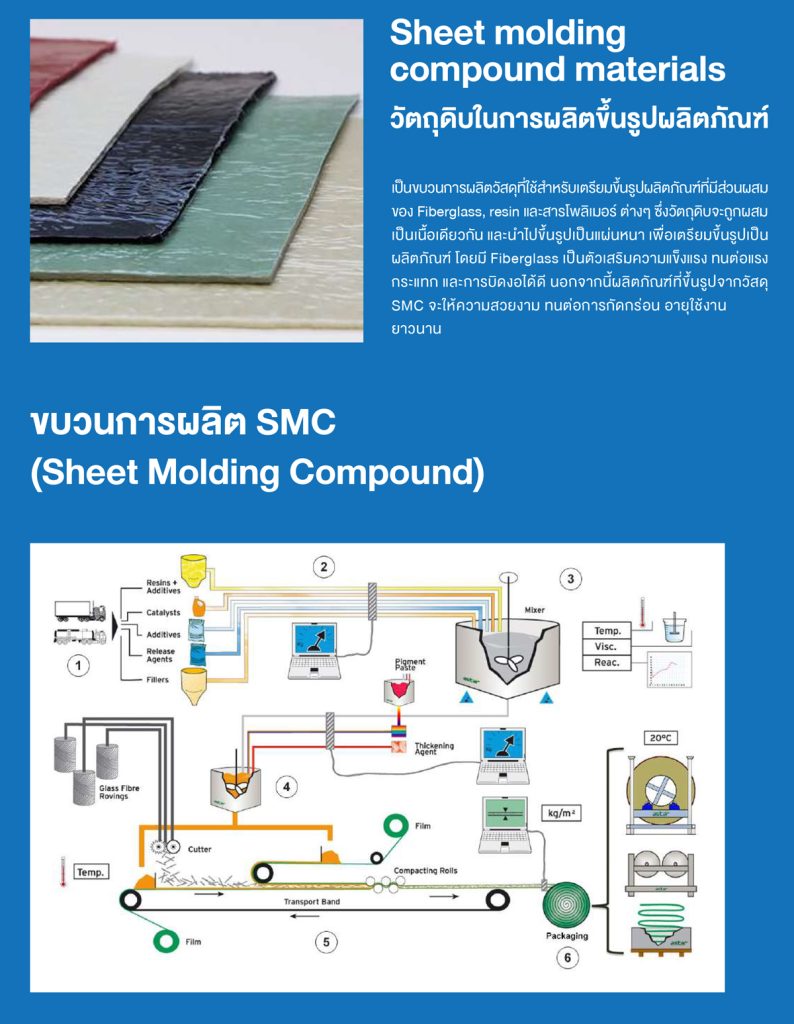 ที่เรียกว่า SMC (Sheet Molding Compound) ซึ่งเป็นวัสดุที่มีส่วนผสมของ Fiberglass