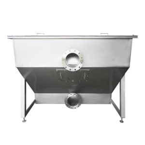 Operation of this filter is perfectly simple: the water to be treated enters the delivery tank and pours evenly onto the filter element comprising special grids which may have different sizes according to the type of solids being separated (0,5 – 0,75 – 1 – 1,5 – 2 3mm.).