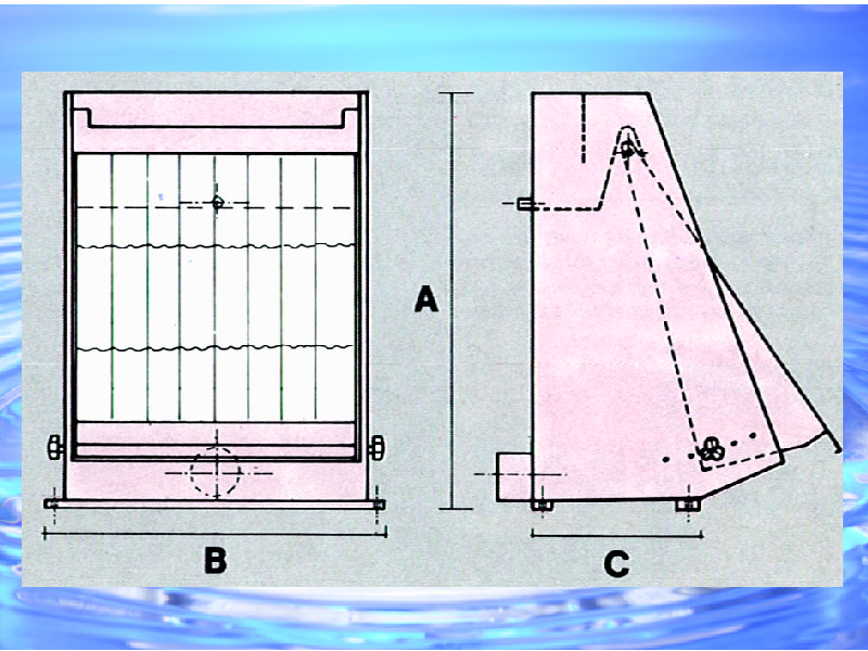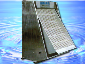 Operation of this filter is perfectly simple: the water to be treated enters the delivery tank and pours evenly onto the filter element comprising special grids which may have different sizes according to the type of solids being separated (0,5 – 0,75 – 1 – 1,5 – 2 3mm.).